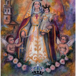 El cartel de las Glorias alcalareñas es esta pintura de Pablo Rosa Rodríguez, representando a la Virgen del Rosario de Santiago, Titular de la Hermandad de la Misericordia. Así lo explica su autor:…