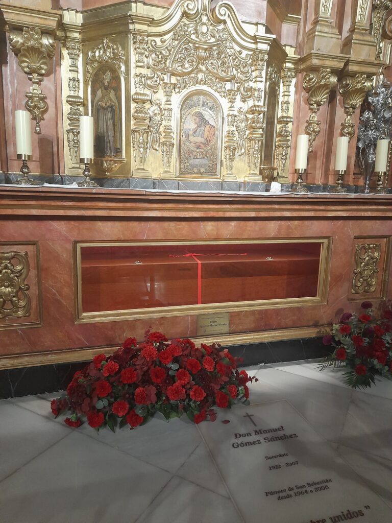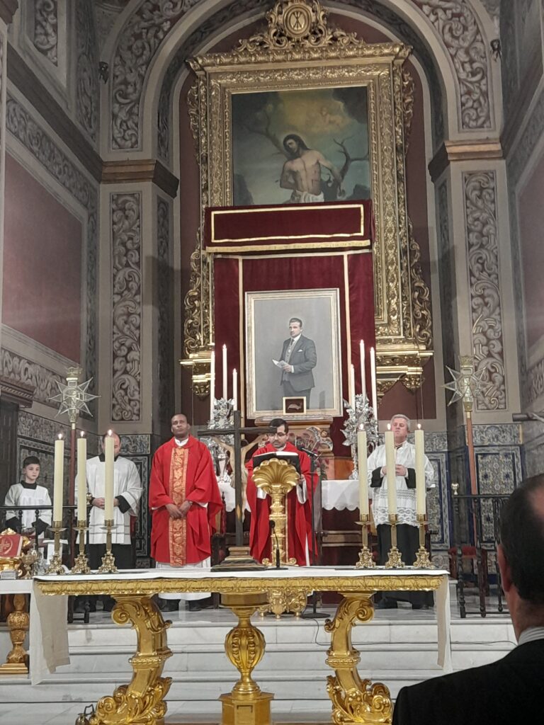 Al final de la Eucaristía nuestro presidente, en nombre de todas las Hermandades, hizo una ofrenda de flores al Beato en la Capilla Sacramental donde se venera.