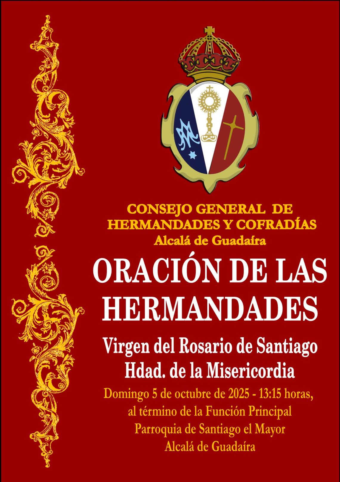 El próximo día 5 las Hermandades realizarán la Oración comunitaria ante la Santísima Virgen del Rosario de Santiago, Titular de la Hermandad de la Divina Misericordia, con motivo de su salida procesional.